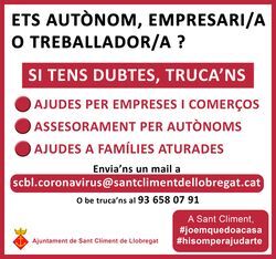 L'Ajuntament de Sant Climent de Llobregat, per tal de fer front als efectes de la crisi sanitària provocada pel coronavirus SARS-CoV-2, ha aprovat la major partida que hagi destinat mai a actuacions socials. Dimecres, tots els grups municipals a instàncies de l'equip de govern van donar llum verda a finançar amb 108.000 euros el pla municipal de contingència davant la pandèmia durant la reunió de seguiment d'aquest mateix pla. Aquesta quantitat prové íntegrament del superàvit municipal del tancament de l'exercici del 2019 i suposa una inversió que, en un municipi com Sant Climent de Llobregat, és del 200% del que es destina anualment a assistència social.