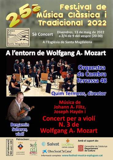 L'Orquestra de Cambra de Sant Cugat, formada per músics de l’Orquestra Simfònica de Sant Cugat, presenta el cicle Orquestra amb joves solistes, on ofereix a joves músics la possibilitat d'actuar com a solistes amb una orquestra professional. En aquest cas acompanya a l’orquestra en Miquel Gusi, resident a Cornellà i que als seus 20 anys ja compta amb un recorregut concertístic internacional, convertint-se en una jove promesa.